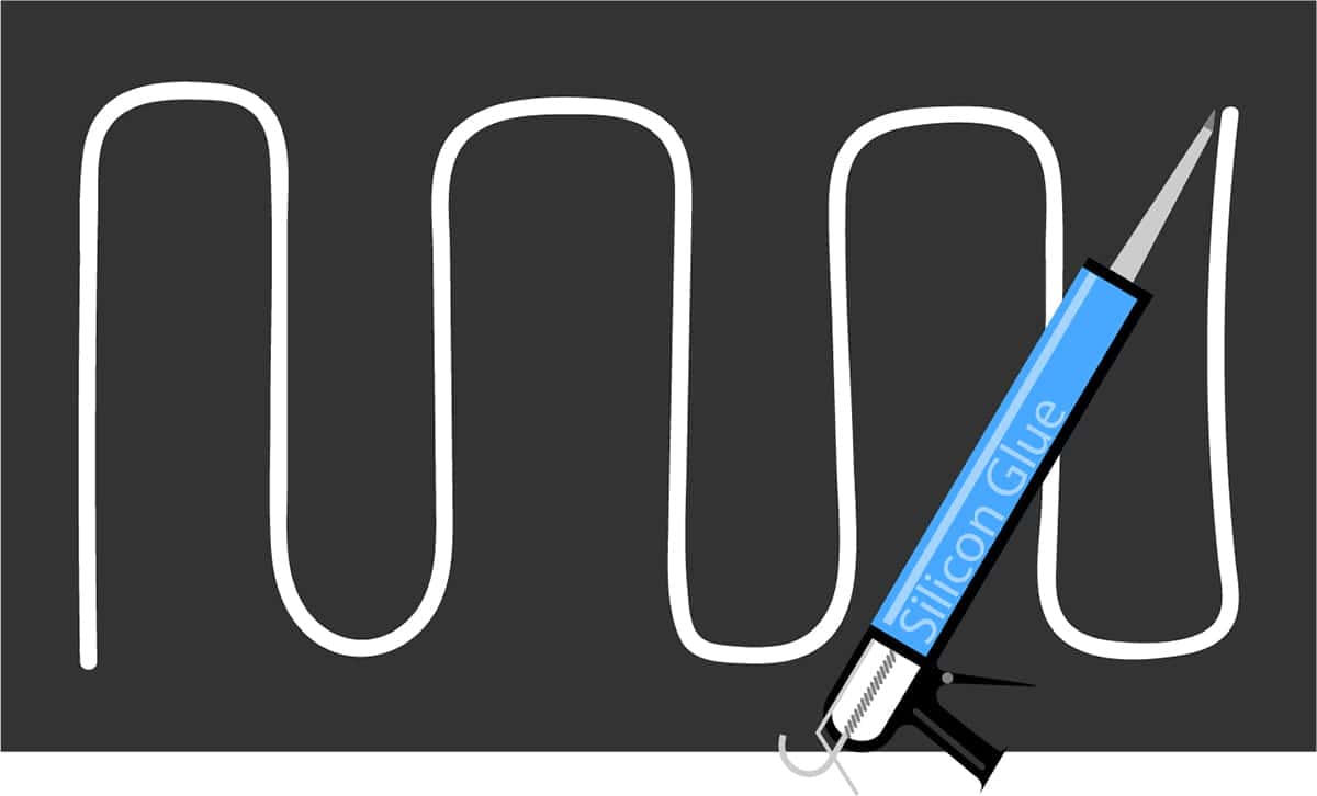 Na odtłuszczony tył panelu nałóż klej montażowy w sposób pokazany na obrazku.
